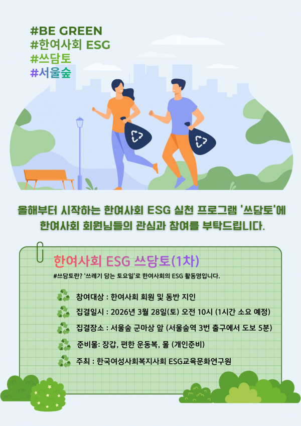 올해부터 시작하는 한여사회 ESG 실천 프로그램인 '쓰담토'에 한여사회 회원님들을 초대합니다.
