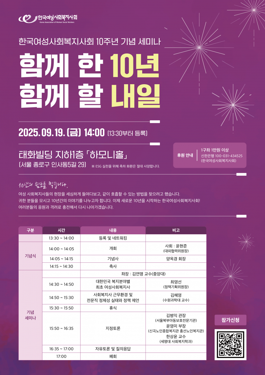 2025년 한국여성사회복지사회 창립 10주년 기념 세미나
